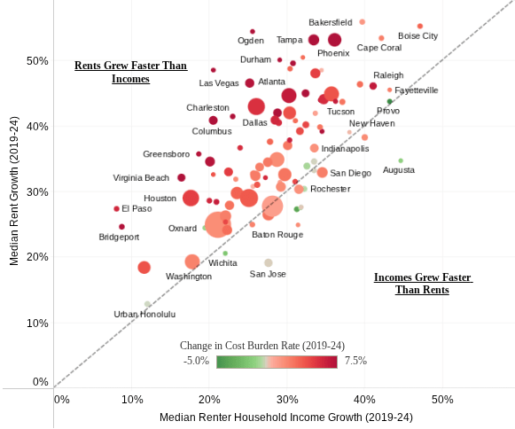 Rents are growing faster than income in 85 of the largest 100 metros: