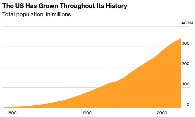 In the year prior to July 1, 2025 the population grew by only 0.5%, or 1.8 million people, its lowest growth since the pandemic. There were 519,000 more births than deaths, however, by 2030 that surplus is likely to disappear altogether, making the US entirely dependent on immigration for population growth.