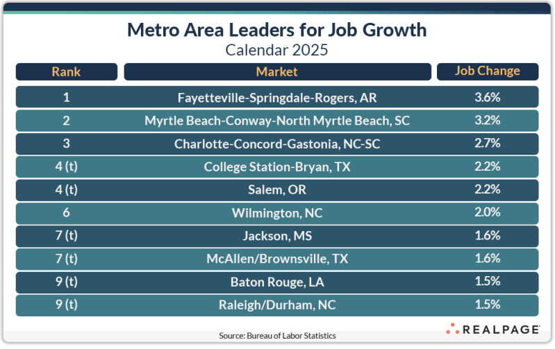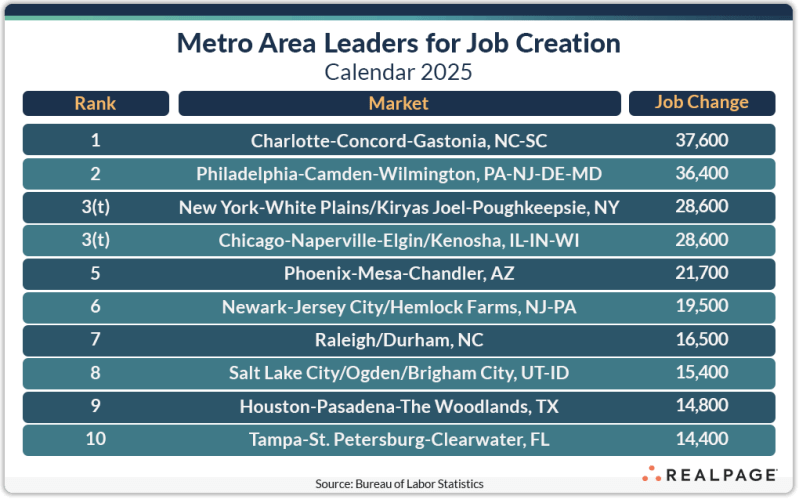 The Charlotte metro area led the country for job gains for 2025 with 37,600 new jobs created for the year. That was an improvement of 21,800 jobs from 2024’s total.