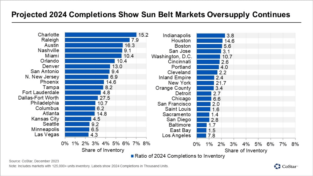 It’s more helpful to look at the increase in supply for a city based on the percentage of the current inventory vs. the total number of units.