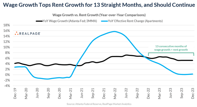 However, wages are currently rising by over 4% annually while rents are flat and falling:
