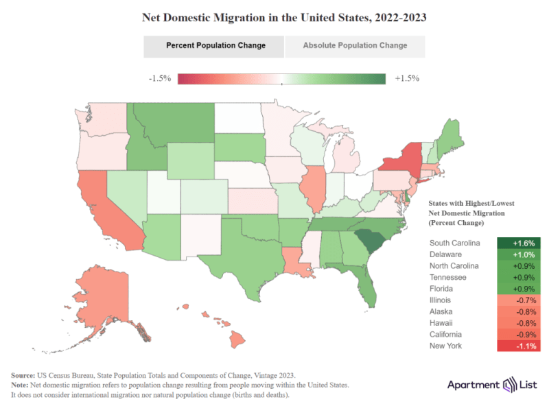 South Carolina experienced the highest annual percentage growth in population and North Carolina ranked third.
