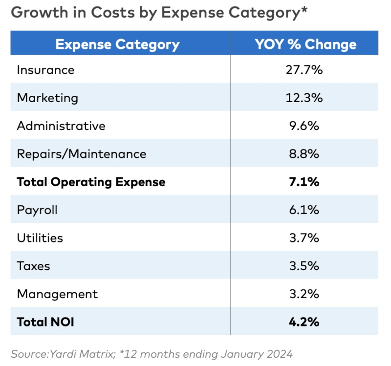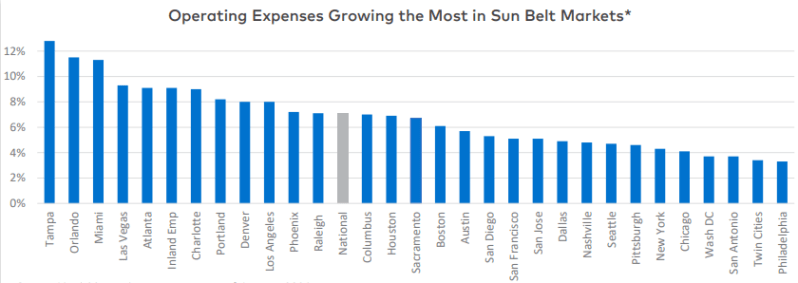 Overall expenses per multifamily units nationally rose by 7.1 percent year-over-year, according to an examination of more than 20,000 properties that use Yardi operating software.