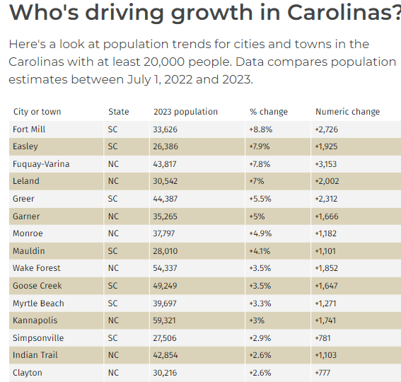 Population Growth For Every Major City In The Carolinas Rose Multifamily Uncategorized May 17, 2024 1 Minute New Census Bureau data released this week: Source: Charlotte Business Journal Share this: Click to share on X (Opens in new window) X Click to share on Facebook (Opens in new window) Facebook Like Loading... Related Published by Rose Multifamily View all posts by Rose Multifamily Published May 17, 2024