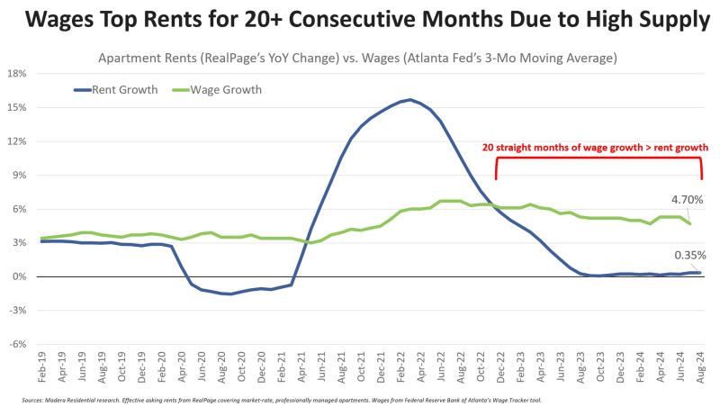 Rental Affordability: Wage Growth Outpacing Rent Growth Rose Multifamily Uncategorized September 5, 2024 1 Minute Wage growth has outpaced rent growth for 20 months, nearly erasing the 2021-2022 rent price surge. Source: Jay Parsons Share this: Click to share on X (Opens in new window) X Click to share on Facebook (Opens in new window) Facebook Like Loading... Related Published by Rose Multifamily View all posts by Rose Multifamily Published September 5, 2024