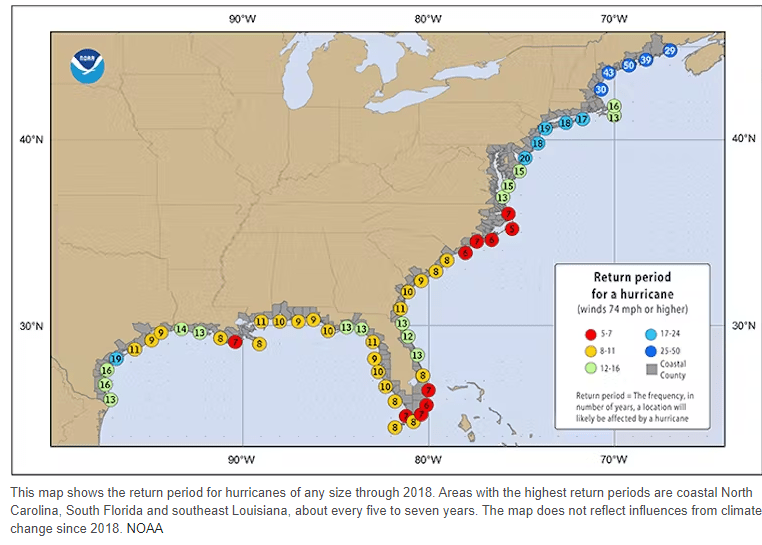 Second, these statistics assume the climate isn’t changing, but we know that it is. Especially in regions near the coasts, the frequency of heavy rainfall has increased as a result of human-caused climate change. Warmer air can hold more moisture, and warmer oceans provide that moisture as the fuel for heavy rainfall.