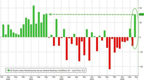 - The general business conditions index climbed forty-three points to 31.2, its highest reading since December 2021. There was also a sharp increase in orders and shipments.