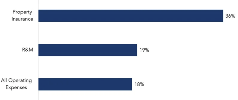 - For residential apartments, insurance costs as a percentage of total expenses rose from 4% to 7% in 2024, according to the National Council of Real Estate Investment Fiduciaries (NCREIF) Property Index, but some areas are seeing even worse increases.
