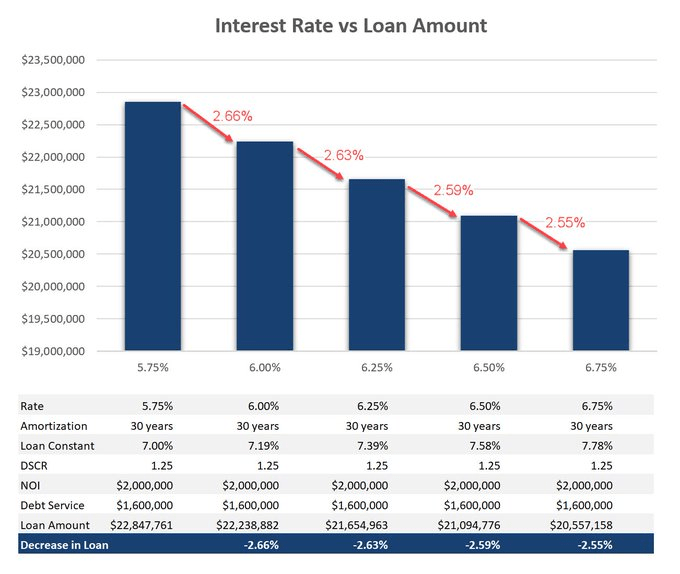 - The example in the chart below uses a $2MM NOI, but the same relationship exists regardless of NOI