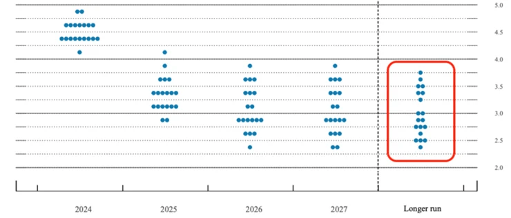 - If the 3.75% dot is accurate, we are just 0.75% away from neutral. If the 2.25% dot is accurate, we are still 2.25% away from neutral. The range is 2.3% – 3.75%. That’s a huge range, which signals uncertainty and a widening difference of opinions.
