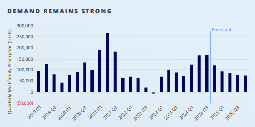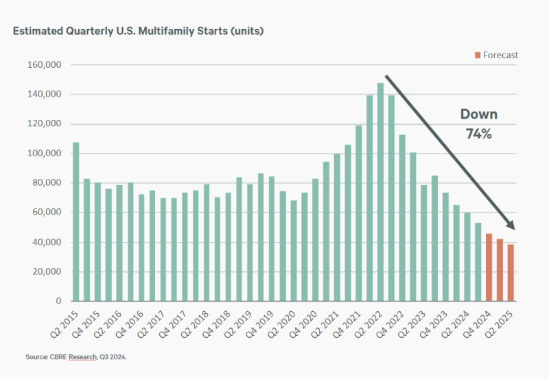 - As this construction cycle abates, and limited groundbreakings follow, occupancies are projected to improve, supporting future rent growth in the quarters, and years ahead. This trend should bring additional capital off the sidelines as investors gain confidence in a near-term market rebound.
