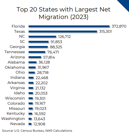 - The Carolinas rank third and fourth for the largest net migration in 2023: