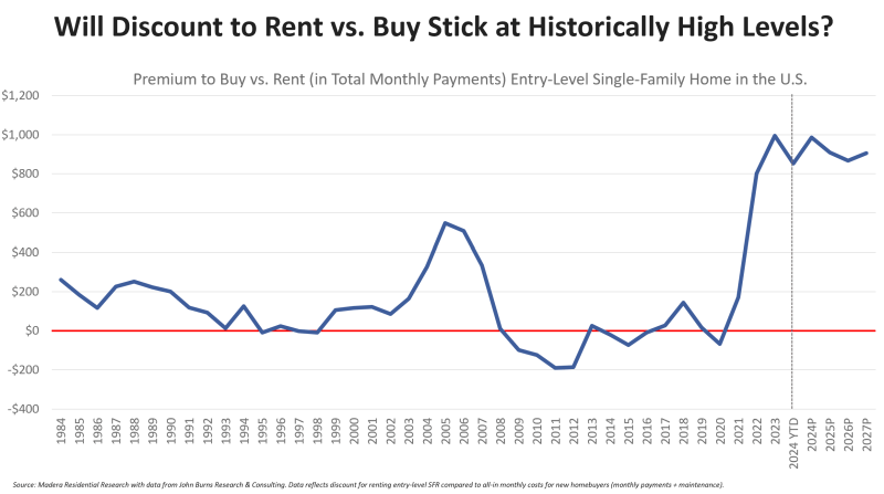 The discount to rent vs. buying remains at the highest levels in decades.: