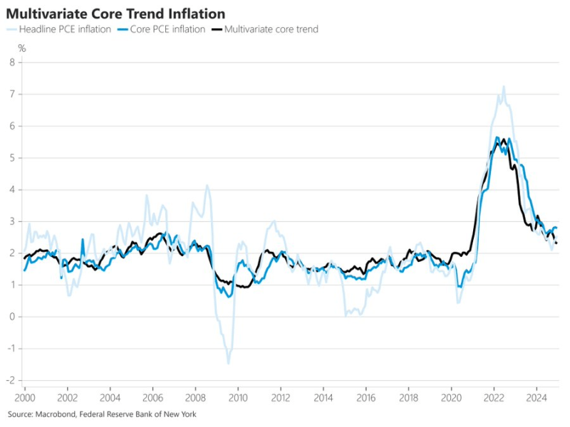 The NY Fed’s measure of inflation persistence (the “multivariate core trend”) fell to 2.3% in December, the lowest level in four years. Almost all of the overshoot relative to the pre-pandemic average comes from non-housing services.