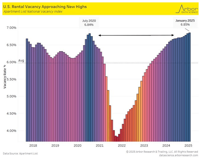 U.S. rental vacancy rate from ApartmentList has surpassed the July 2020 peak, up to 6.85%: