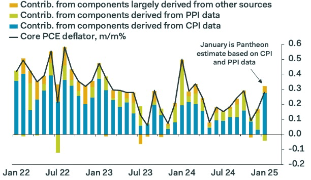 The PPI numbers were a game-changer for the Core PCE print coming at the end of the month (Core PCE is the inflation gauge the Fed believes is most important). We’re now tracking 0.28% month-over-month, 2.6% year-over-year (down from 2.8% in December) All the healthcare and insurance PPI components were weak and airline fares prices fell sharply. About as good as the Fed could have hoped for.
