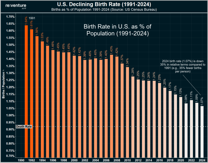 The U.S. Birth Rate Continues To Decline Multifamily News Uncategorized March 12, 2026 1 Minute An interesting chart to consider when thinking about investing in student housing vs. senior housing over the next decade. Share this: Share on X (Opens in new window) X Share on Facebook (Opens in new window) Facebook Like Loading... Related Published by Multifamily News View all posts by Multifamily News Published March 12, 2026
