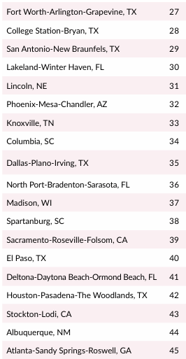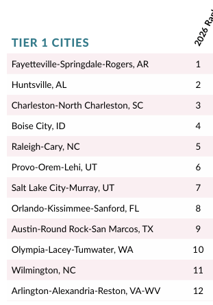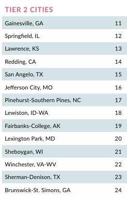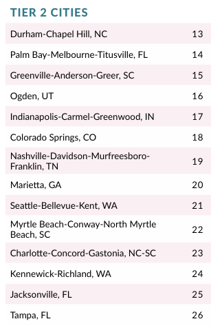 Among large metros, the Carolinas remain one of the nation’s hottest regions. North Carolina boasts three of the top 15 best-performing cities. and all five of South Carolinas large metros rank in the top quartile.
