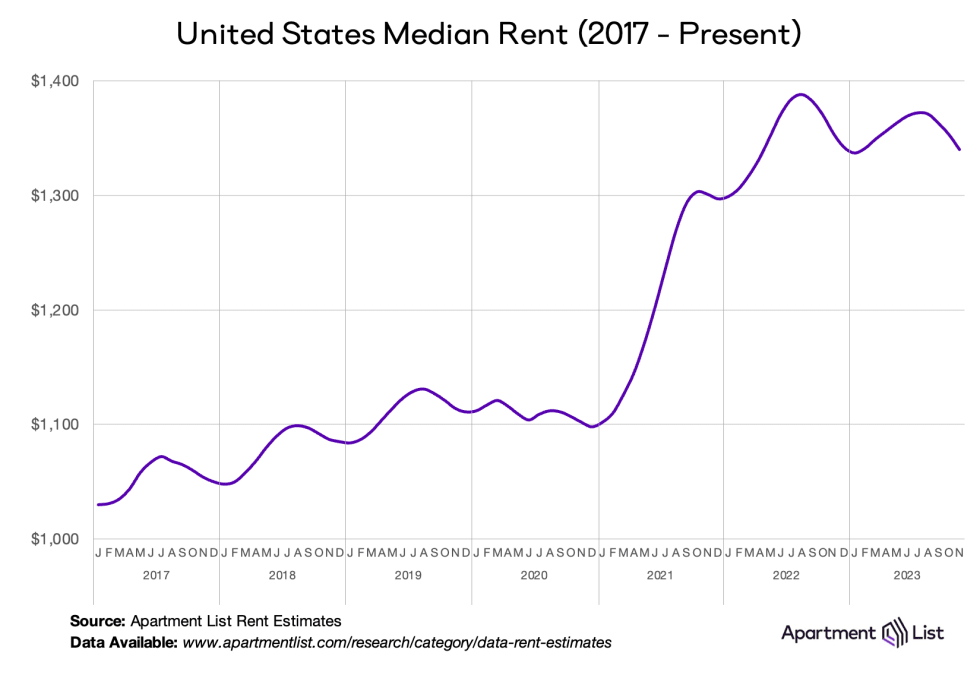 U.S. rents are still digesting the incredible rise during 2021 and the first half of 2022. Rents are below their peak in many markets across the country and continue to fall month-over-month, especially when concessions are taken into account.