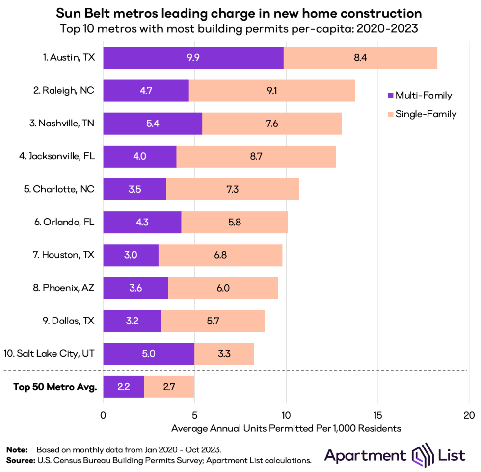 The sun belt is faced with an enormous supply surge. These are high population growth markets, but they have experienced some of the largest rent declines in the country over the last year.